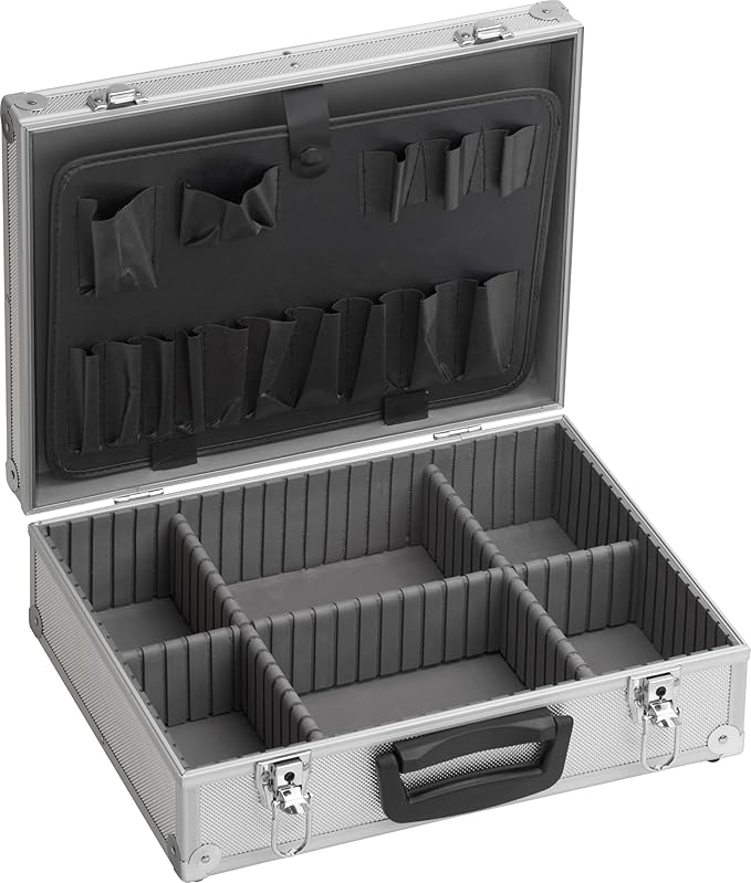 Mallette à outils vide 395 x 300 x 130 mm – Dos renforcé – Compartiments individuels – Verrouillable, boîte à outils, organiseur, mallette en aluminium vide