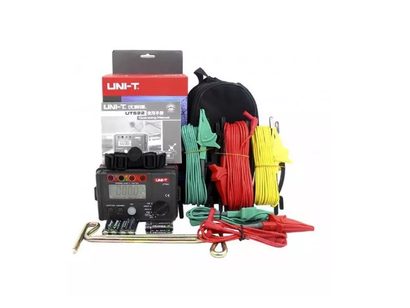 L’UT522 est un testeur de résistance de terre avec une gamme plus large et un comptage plus élevé que les autres appareils de la série UT520 tels que l’ UT521. Les résistances de terre sont destinées à mesurer la mise à la terre des systèmes électriques. Diverses applications nécessitent une bonne connexion à la terre, par exemple pour dissiper les surtensions ou les coups de foudre. Les testeurs de terre fonctionnent avec des broches qui doivent être insérées dans un sol humide. En outre, un fil de connexion pour l’objet à mesurer est inclus pour la comparaison avec la terre.