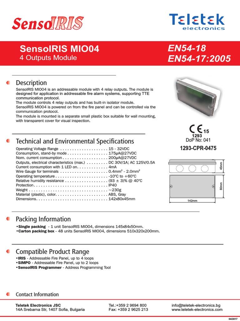 Le SensoIRIS MIO04 est un module adressable de contrôle équipé de 4 sorties relais avec isolateur intégré, conçu pour les systèmes de détection incendie utilisant le protocole TTE.