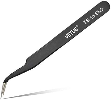 Vetus TS-15 ESD Pince à épiler de précision antistatique incurvée pour la fabrication de bijoux Outil de réparation de téléphone portable.
